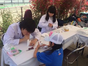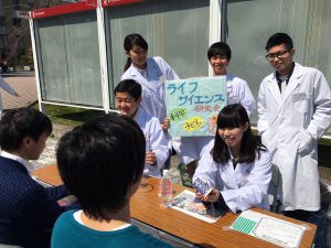 さぁ新歓期しんかんきいてきたところで、4がつ30にちには、草津市くさつし開催かいさいされただい49回宿場祭かいしゅくばまつりに参加さんかしました。写真しゃしんは「回転かいてんスネーク」の体験実験たいけんじっけん様子ようすです。