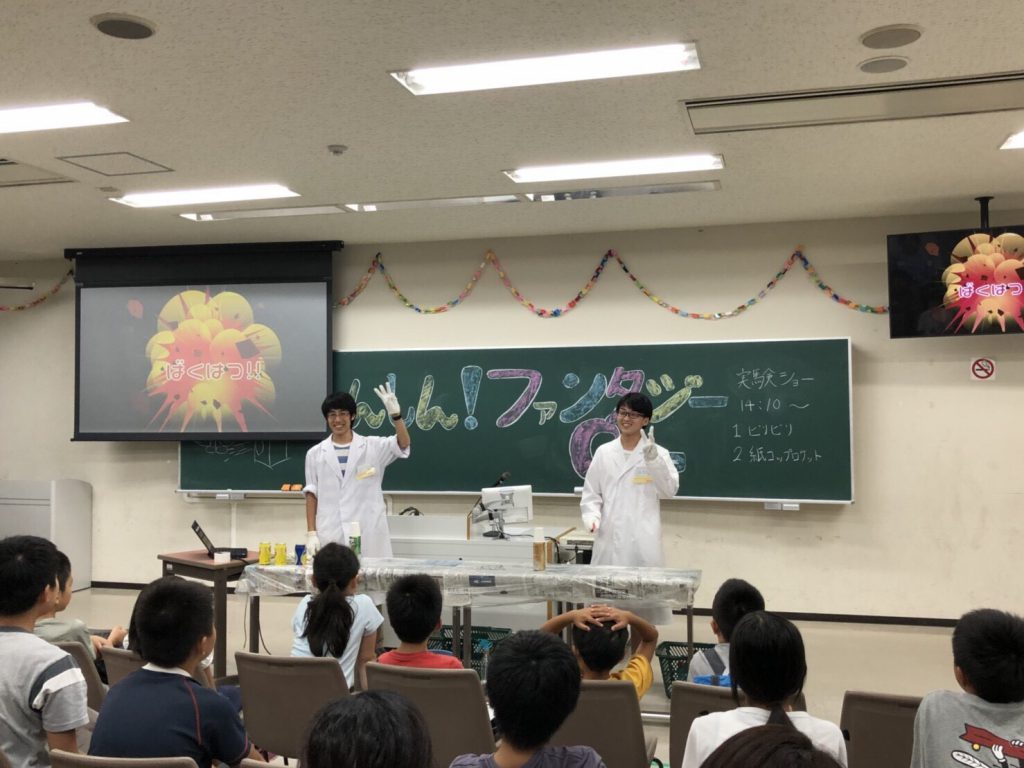 こんなかぜに、ショーをてもらい、たのしんでもらってから、実際じっさい実験じっけんをやってもらうことで、子供こどもたちには理科りかをどんどんきになるきっかけをつくっていけたらなとおもっています。