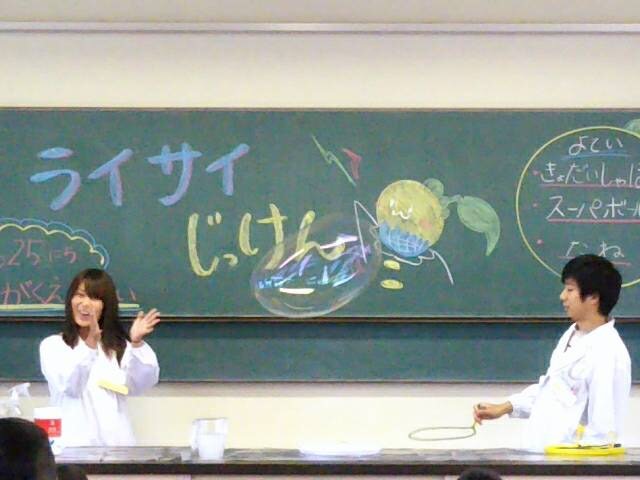 公開実験が始まる前に子供たちと交流をしたのですが、みんな実験をするって言うと目をキラキラさせていて、とてもやる気になりました。